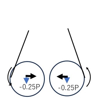| 90度/270度回転 | 0 | -0.25P | -0.25P |
